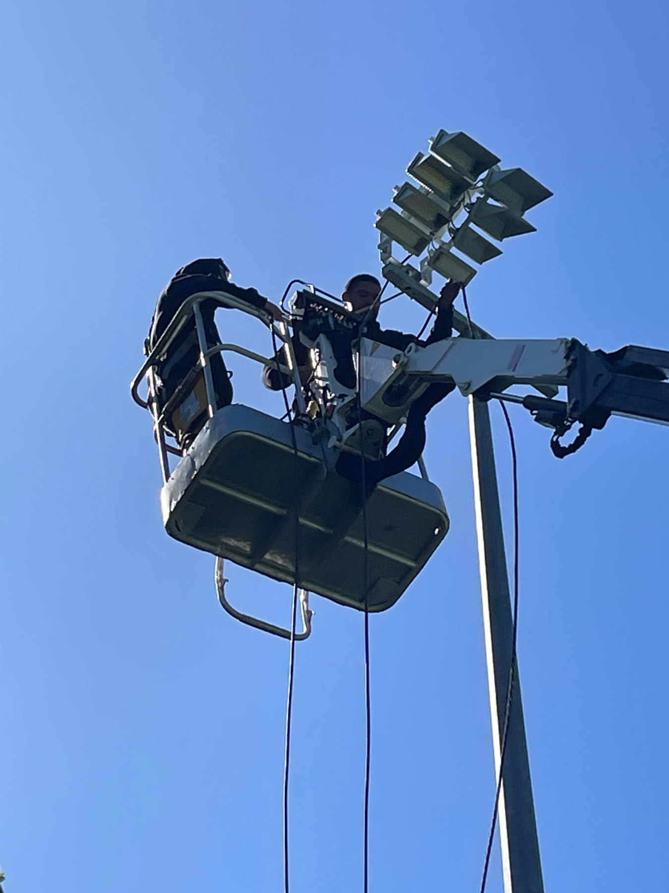 The poles were surveyed with a drone to ensure there was no evidence of rust or corrosion. Once measured, the light plan was completed ensuring the best possible light spread – achieve the 500 lux required, whilst minimising light spill onto the neighbouring properties.