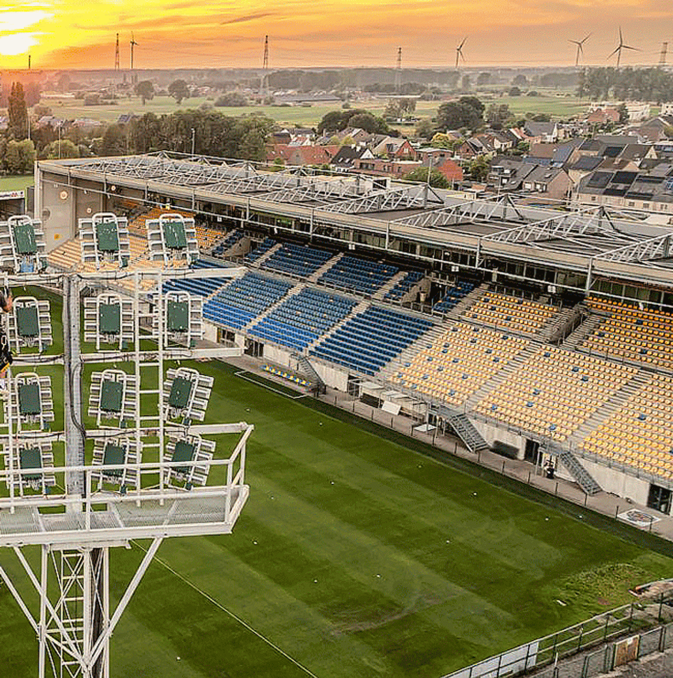 Located in the municipality of Beveren-Kruibeke-Zwijndrecht on the edge of East Flanders lies the iconic Freethiel Stadium. This venue is home to SK Beveren, a club competing in Pro League 1B and ambitiously working towards a return to the top tier 1A. The club’s blue and yellow colours are instantly recognisable to every football fan in Belgium. The stadium exudes history and brings together passionate supporters. With this rich heritage in mind, Lumosa has put the stadium in a new light.